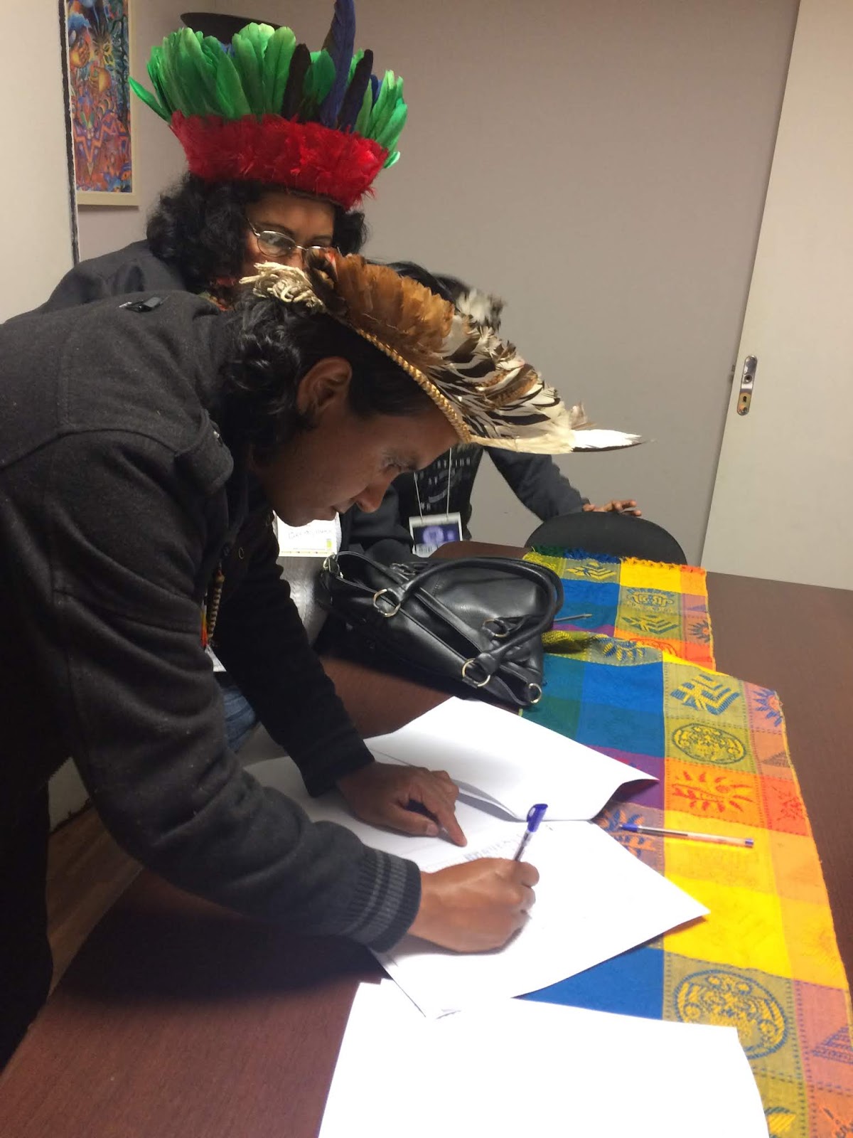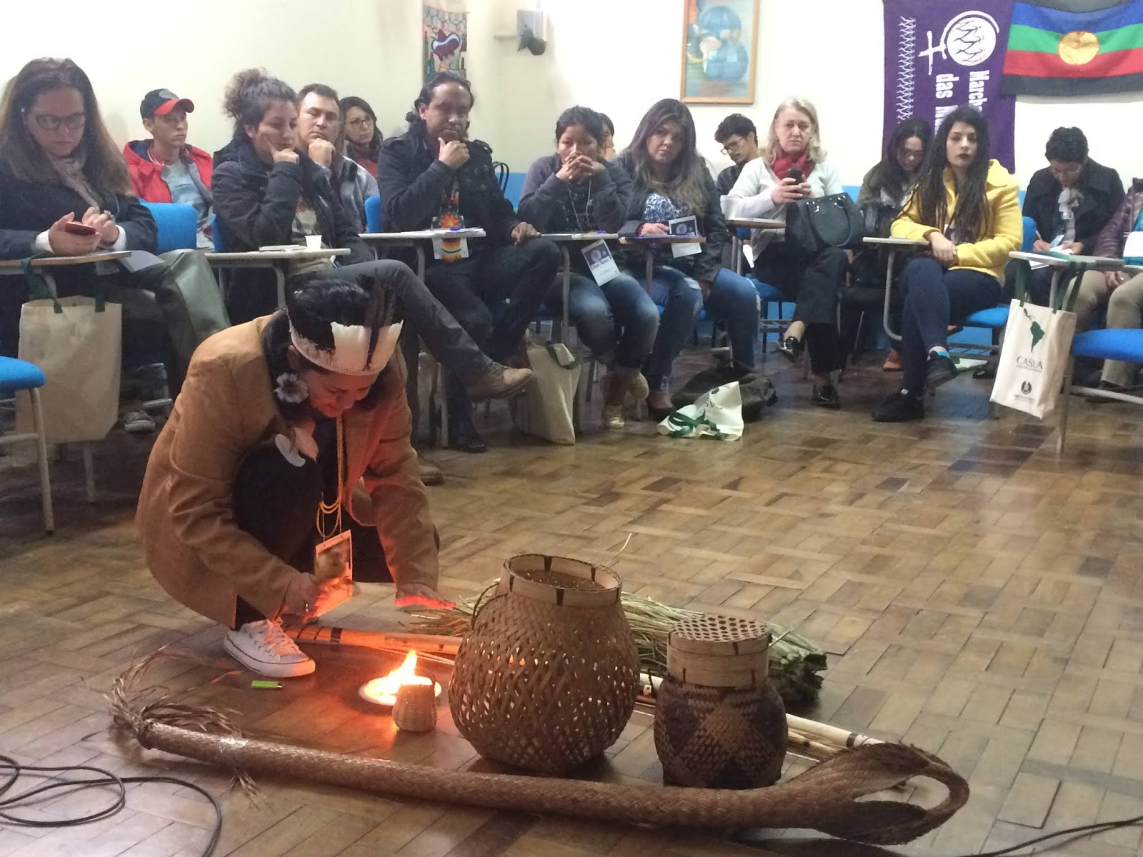 Outro ato que marcou as atividades no Evento na CASLA foi a assinatura da instalação do “Projeto Unitinerante: Universidade Itinerante dos Direitos Humanos e da Natureza, pela Paz e pelo Bem Viver“ por parte de diversas autoridades do poder público, de universidades e organizações sociais (figura abaixo). A solenidade de assinaturas contou com o Prof. Dr. Ricardo Marcelo Fonseca (Reitor da UFPR), Dr. Mario Cândido de Athayde (SETI-PR), do Deputado Estadual Dep. Estadual Péricles Holleben de Mello (ALEP), Dr. Olympio de Sá Sottomaior Neto (Ministério Público do Paraná), de Pró-reitores da UEL, UEM, UNICENTRO, UNIOESTE, Prof. Dr. Nilceu Jacob Deitos (Fundação Araucária), professores da UNIJUí, UNESC, ASIAKG, If’pr-Paranaguá, Dra. Gladys Souza Sanchez (CASLA), Profa. Dra. Marilisa do Rocio Oliveira (Proex, UEPG), Prof. Dr. Nicolas Floriani (UEPG), Prof. Hermes Silva Leão (Presidente APP-Sindicato PR), Prof. Dr. Nilceu Jacob Deitos (Fundação Araucária), Prof. Dr. Daniel Cenci (UNIJUÍ), Profa. Dra. Irene Carniatto (UNIOESTE), Prof. Dr. Geraldo Milioli (UNESC), Prof. Dr. Antonio Haliski (IFPR – Paranaguá), Prof. Dr. Ancelmo Schörner (UNICENTRO – Irati), Dr. Olympio de Sá Sottomaior Neto (Ministério Público do Paraná), Dra. Ivete Caribe (CASLA-Jur.), Dr. Fernando Redede Rodrigues (Núcleo Especializado da Infância e Juventude), Dra. Carolina Balbinot (Defensoria Pública Federal), Prof. Ualid Rabah – Diretor de Relações Institucionais – Federação Árabe Palestina do Brasil, Dra. Tatyana S. Friedrich (Projeto Refúgio, Migrações e Hospitalidade – UFPR), Dra. Isabel Kugler Mendes (Presidente Conselho da Comunidade – Curitiba), Dr. Luis González (Comisión de Prevención de la Tortura Misiones, Argentina), Profa. Dra. Joseli Maria Silva (UEPG), Dra. Elizabete Subtil de Oliveira (Coord. do Conselho da Comunidade Curitiba), Prof. Dr. Leandro Franklin Gorsdorf (UFPR), Profa. Dra. Mara Solange Gomes Dellaroza (Pro-Reitoria de Extensão da UEL), Ms. Taíza Lewitski (MASA, Benzedeiras), Cacique Irineu Rodrigues – Pontal do Paraná, Faxinalense Acir Tulio – Marmeleiro de Baixo (IN MEMORIAM), Quilombola Arildo Portela – Palmital dos Pretos, Caiçara Conceição Vieira Ramos – Pontal do Paraná, Ms. Ronir Fátima Rodrigues (Interconexões, UEPG), Dra. Gioconda Mongelós (CASLA), Márcio Kokoj – Arpinsul – Comunidade Indígena Kaingang de Mangueirinha – PR, Suzy Gakoj Tomaz – Comunidade, Indígena Kaingang de Nova Paranheiras, Rio das Cobras, Michele Santos da Silva – Mundurucus Amazônia, Belarmina Luiz Paraná – Presidente das Mulheres Indígenas do Paraná (In Memorian), Ambrósio Luiz Paraná – Lider de Terra Indígena, Manguerinha, Paraná, Cacique Carlos Santos – Aldeia Kakane-Porã-Fazenda Rio Grande, Laércio Araçai e Olívia Araçai – Aldeia Kakane-Porã – Faz. Rio Grande, Leandro dos Santos – Aldeia Kakane-Porã- Faz. Rio Grande, Licínio Cordeiro – Aldeia Terra Indígena Faxinal de Cândido de Abreu, Prof. Dr. Ezequiel Westphal (IFPR, Paranaguá), Prof. Dr. Antonio Haliski (IFPR-Paranaguá), Dr. Saint Clair Honorato dos Santos (Ministério Público, PR), Dra. Margit Hauer (IAP), Dr. Luis Alexandre Gonçalves Cunha (IESOL, UEPG), Grupo de Pesquisa Interconexões (UEPG).