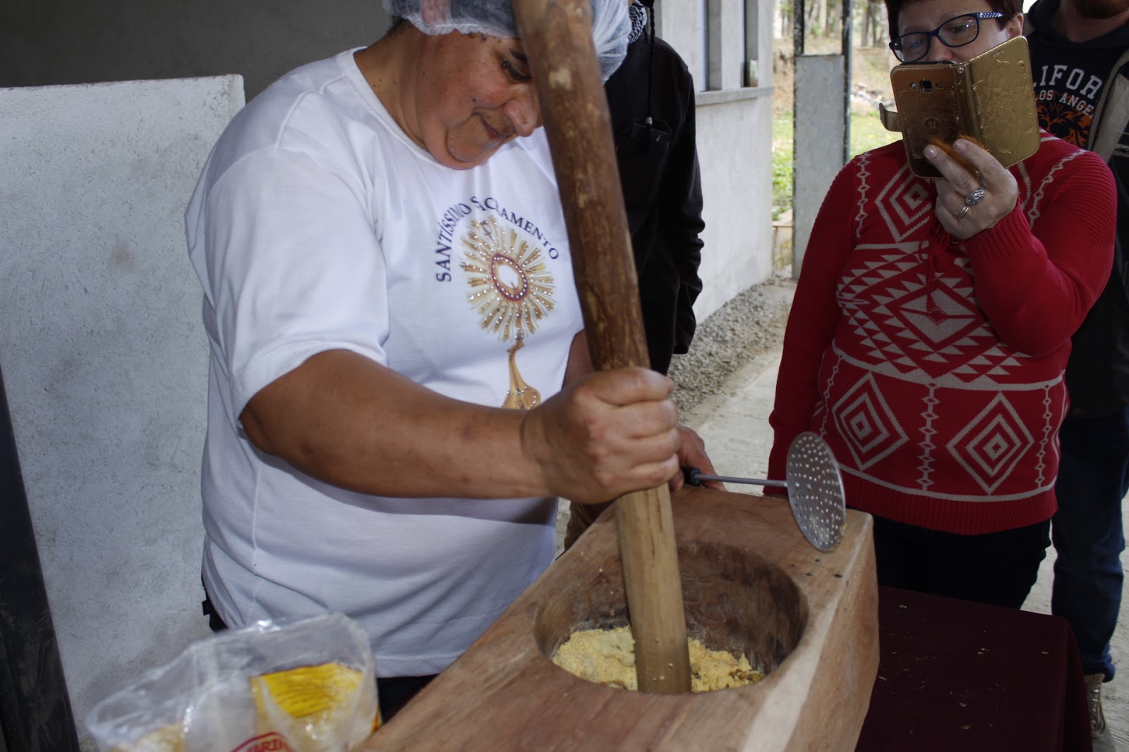 Foto 08 – Sujeitos das comunidades tradicionais socando canjica na cinza