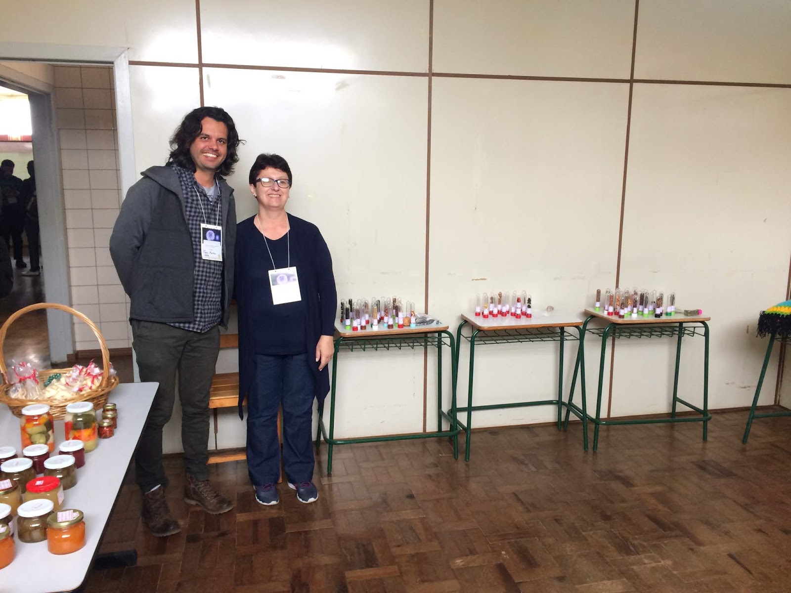 Na Casla também pode-se realizar a “1ª Feira de Sabores e Sementes”, as sementes e produtos coletados nas comunidades, deram-se em períodos anteriores, durante as atividades de pesquisa do Grupo Interconexões-UEPG. Efetivou-se a comercialização da produção das três comunidades tradicionais ao qual o evento foi ambientado e de agricultores familiares da comunidade Sete Saltos de Cima, vizinha ao quilombo e faxinal que também são foco do projeto de pesquisa e extensão (Figura 02). Além deles comercializarem seus produtos diretamente ao consumidor, nesta ocasião os sujeitos comunitários oportunizaram a exposição de saberes-fazeres (Foto 08) através das oficinais de práticas culturais com a confecção da canjica com cinza no pilão (PEREIRA, 2018) e a confecção de cuia em porongo e a bomba de bambu, posteriormente, com o material pronto os participantes constituíram uma roda de chimarrão (MARTINS, 2018).